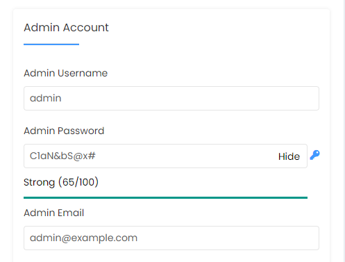 - Admin Password You can create a password or generate one using the key icon.