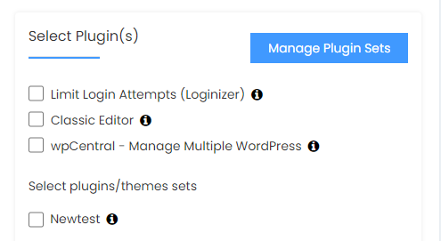 9.Select Plugin(s) section allows you to select plugins to use for your site